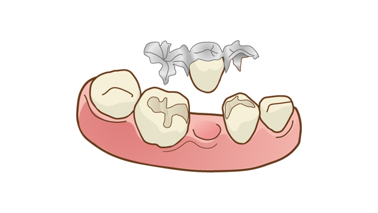 ブリッジ治療とは、失った歯の両隣の歯を削り、そこへ橋をかけるように人工歯を装着します。